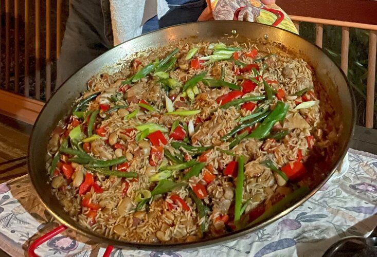 Ingredients 6 deboned chicken thighs 2 capsicums 1 onion 3 cloves garlic 1 bunch coriander 1 bunch green spring onions 1 cup olive oil 1 tablespoon soy sauce 2 teaspoons paprika 1/
