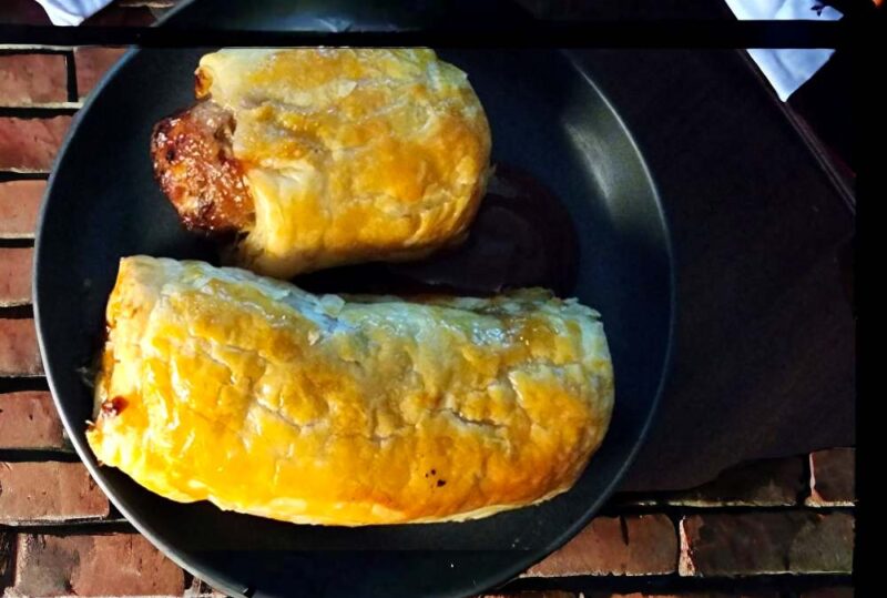 Ingredients Makes 6 large, 12 medium or 18 small sausage rolls 6 Flavoured Sausages of your choice 3 sheets Puff Pastry 1 egg whisked for wash Method Thaw the puff pastry sheets an