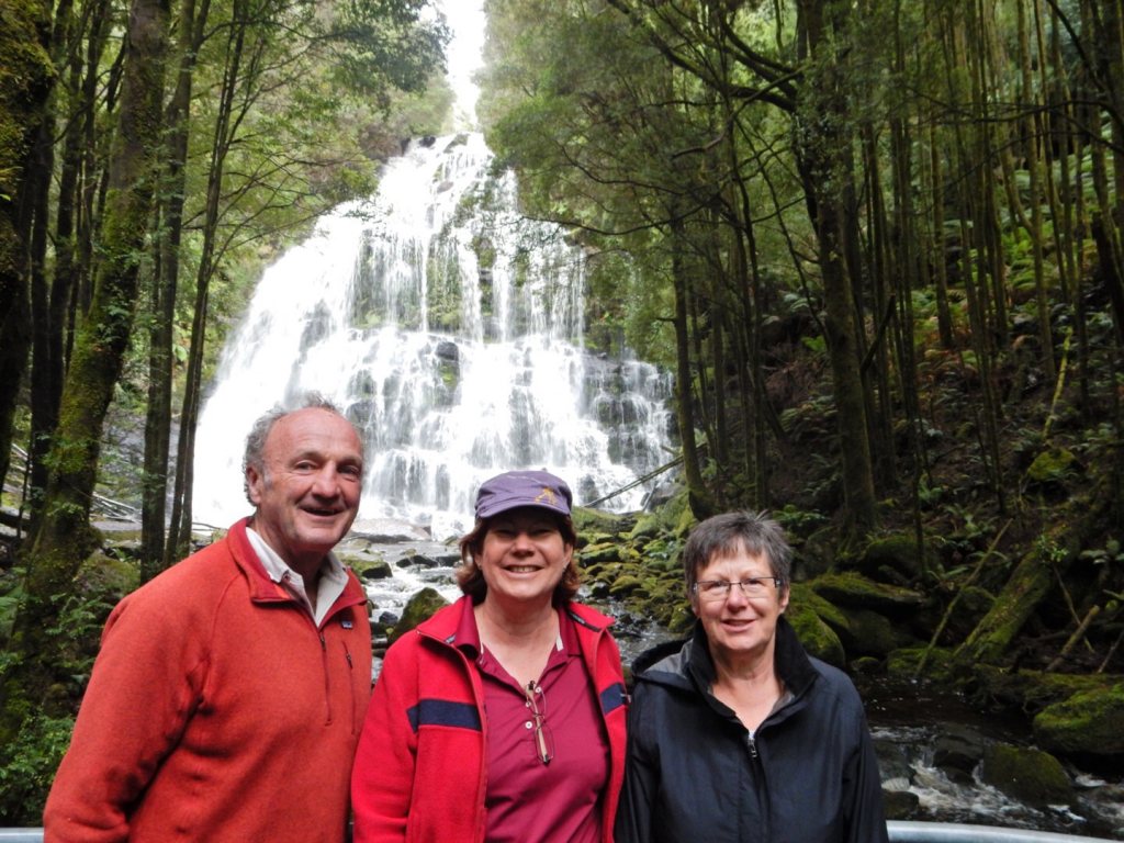 2015 Tasmania Trip West Coast Wilderness Railway, Queenstown Tuesday 10th March 2015 John & Maureen Carswell with Susan at Nelson Falls Empire Hotel, Queenstown We find a way or make it Steam train, Rhinadeena ABT Railway system Engine on turntable Tasmania